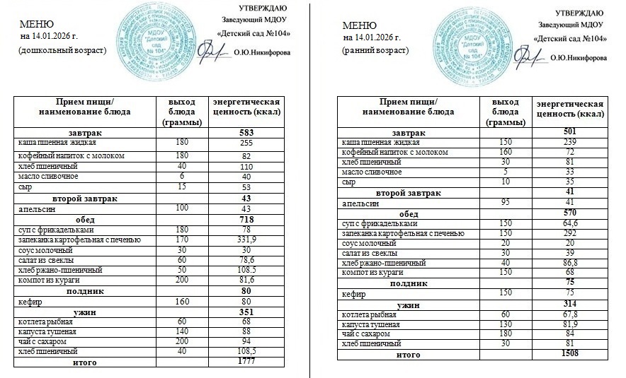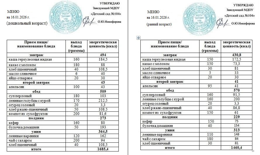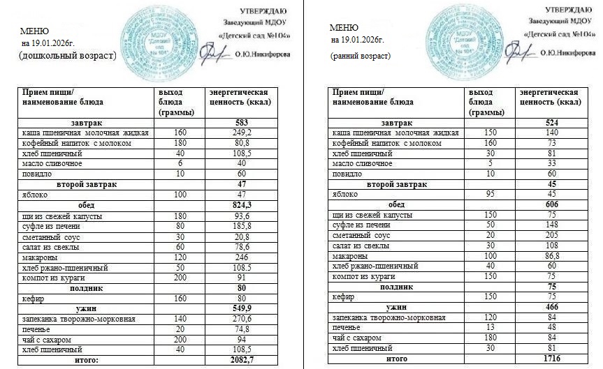 Меню на 20 января 2026 года