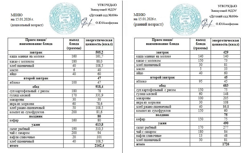 На основании примерного 10-ти дневного меню ежедневно составляется меню – требование установленного образца, с указанием выхода блюд для детей раннего и дошкольного возраста.